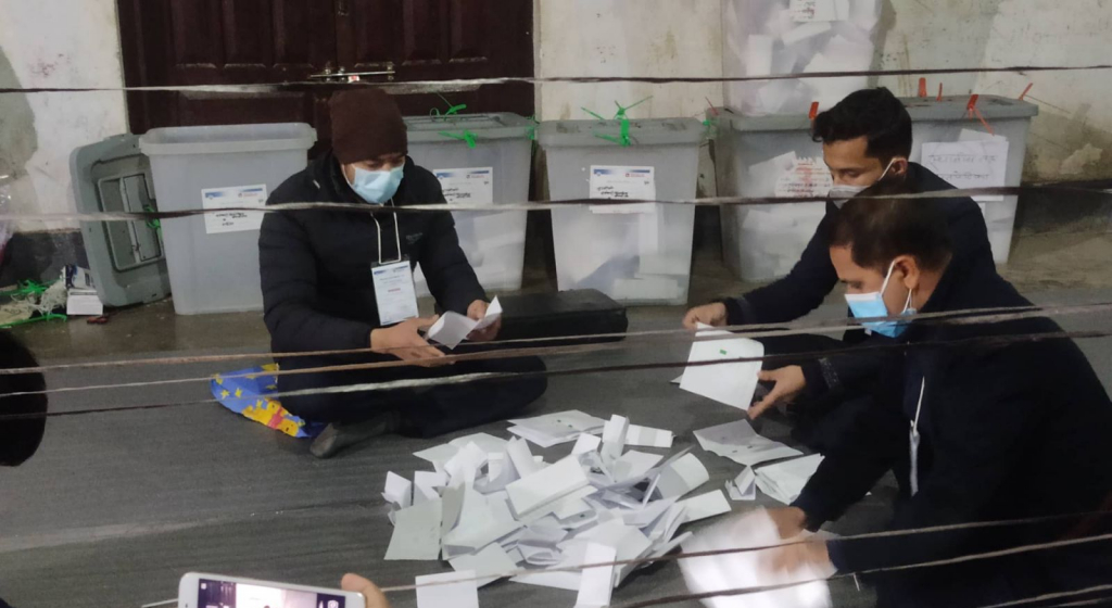 आईतबार राती वसेको सर्वदलीय वैठकबाट सहमती जुट्न नसकेपछि आज पुनः बसेको बैठकले दिउँसोबाट मतगणना गर्ने निर्णय गरेको मुख्य निर्वाचन अधिकृतको कार्यालयका सहायक निर्वाचन अधिकृत इश्वर आचार्यले जानकारी दिनुभयो । उहाँका अनुसार बैठकले कार्यालयमा परेको उजुरी आयोगमा पठाउने, सामाजिक सञ्जालमा प्रयोग गरिएका अशिष्ट शव्दहरुका बिषयमा आबश्यक कारवाही गर्ने, मतगणना क्षेत्र मुख्यनिर्वाचन अधिकृतको नियन्त्रणमा राखेर गणना अघि वढाउने लगाएतका निर्णय भएका छन् ।